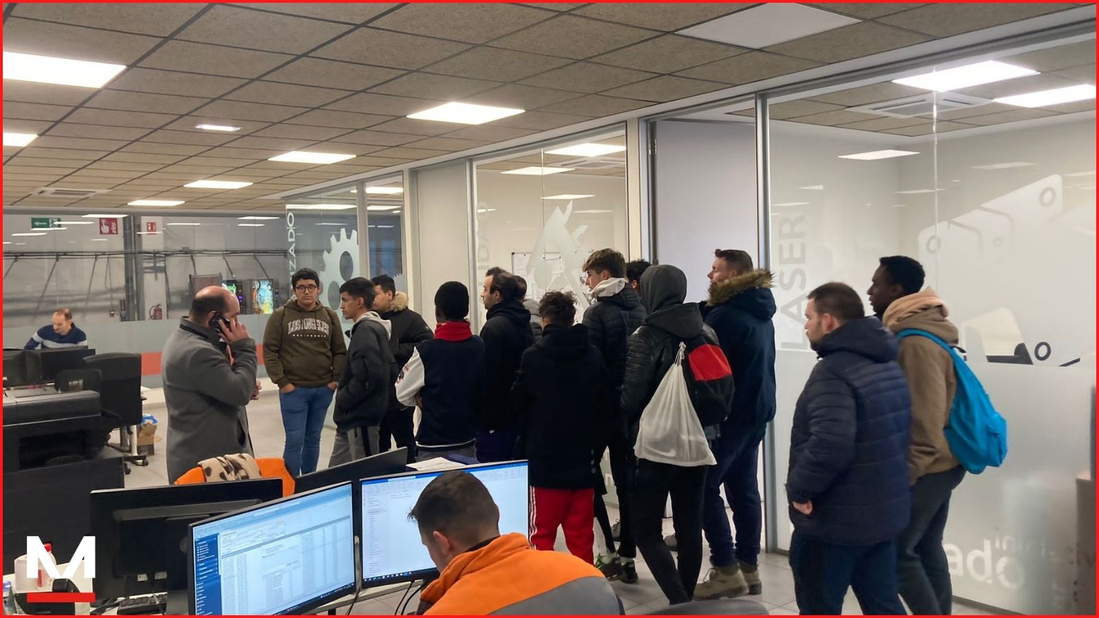 Más tarde, procedimos a realizar una visita por todas las zonas de la fábrica, donde pudieron ver trabajar en directo a las máquinas más modernas del mercado, algo que no todos los centros educativos pueden tener. Los cortes láser automatizados de Amada y los centros de mecanizado automatizados de DMG Mori, concentraron el interés de los alumnos.